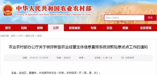 為加快推進新型農(nóng)業(yè)經(jīng)營主體信息直報系統(tǒng)(以下簡稱直報系統(tǒng))應用實施,幫助緩解新型農(nóng)業(yè)經(jīng)營主體貸款難、貸款貴問題,我部將以直報系統(tǒng)為載體開展貸款貼息試點?,F(xiàn)將有關事宜通知如下。