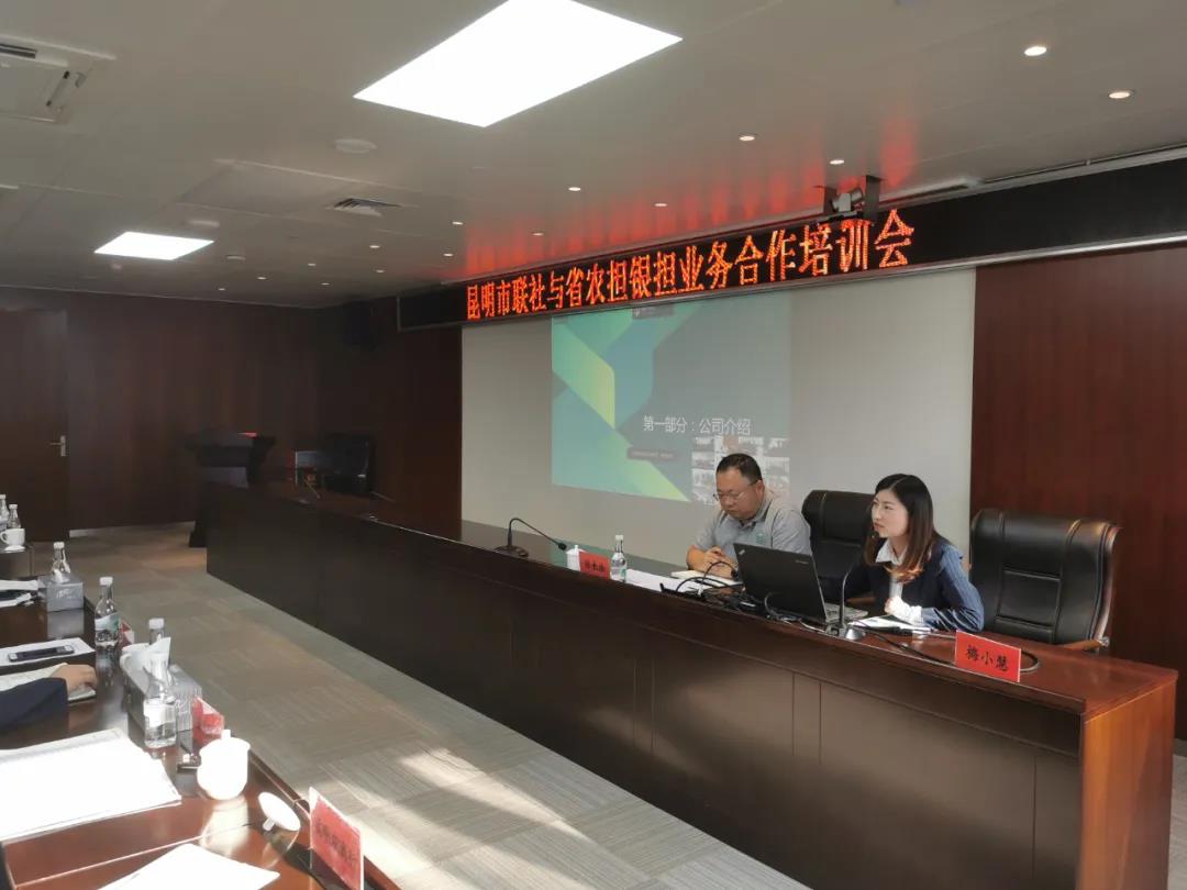 隨后,農(nóng)擔二部負責人張長浩和昆明業(yè)務團隊梅小慧全面的介紹了合作模式的準入、操作要點、產(chǎn)品優(yōu)勢及能為對方解決的實際問題,并梳理了以往合作中各家聯(lián)社遇到的疑惑點、操作中的困難點,從聯(lián)社角度、經(jīng)辦人員的角度進行了全面的講解?,F(xiàn)場雙方積極交流,各聯(lián)社紛紛提問,針對現(xiàn)場提出的問題我方進行了詳盡的解答。