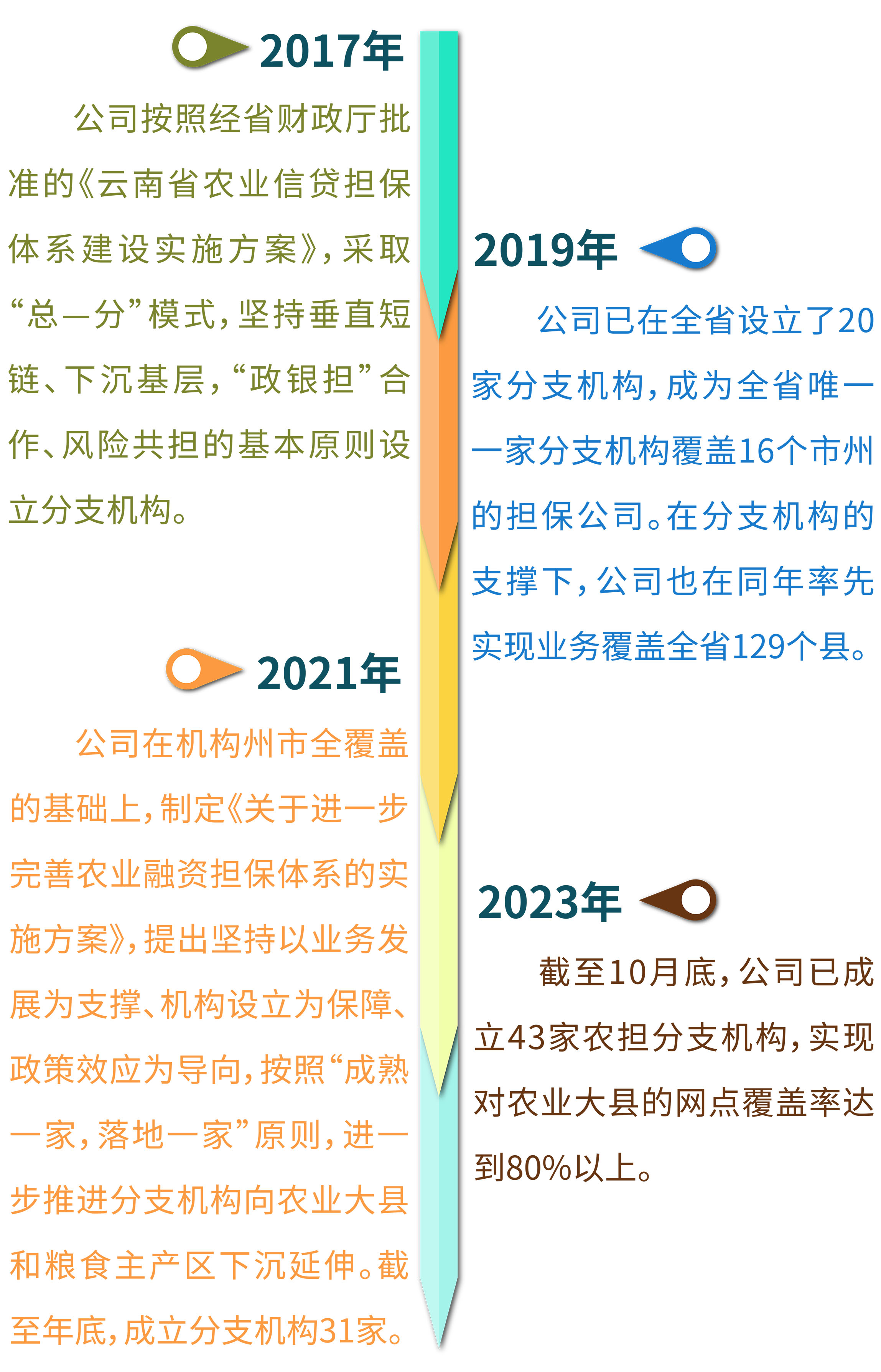 近日,隨著公司彝良辦事處、云縣辦事處先后掛牌,全省共計(jì)43家農(nóng)擔(dān)分支機(jī)構(gòu)投入運(yùn)營,我省農(nóng)業(yè)信貸擔(dān)保體系建設(shè)規(guī)劃全面完成,農(nóng)業(yè)信貸擔(dān)保基礎(chǔ)進(jìn)一步夯實(shí),支農(nóng)助農(nóng)手段顯著增強(qiáng)。